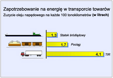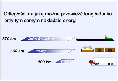 Statek żeglugi śródlądowej ma poza najniższym z innych środków transportu zużyciem energii.