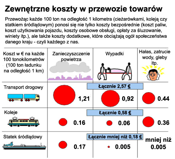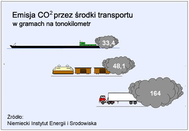 także niemal pomijalnie mały udział w emisji gazowych i stałych zanieczyszczeń wydzielanych przez cały transport towarowy.