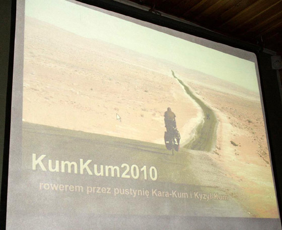3 listopada spotkaliśmy się znów na WRÓBLINIE. Wszystkie miejsca były zajęte, a to zapewne za sprawą zapowiedzi prelekcji Marcina Jakuba Korzonka o wyprawie rowerowej przez dwie pustynie Kara Kum i Kyzył Kum, którą wraz z kolegą odbyli w 2010 roku.