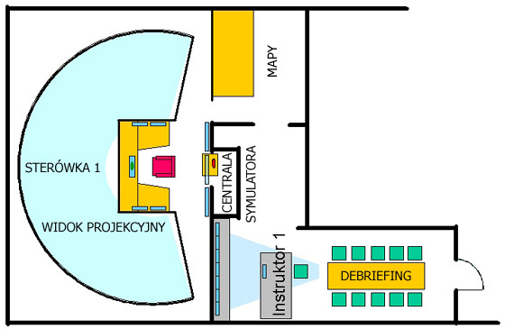 Do tego dochodzą cztery dalsze kabiny do nauki prowadzenia statku, które służą przede wszystkim do jazdy na radar. Monitory o kącie obserwacji 40°, umożliwiają również jazdę na obserwację wzrokową.