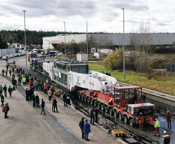 12 listopada 2010 rozpoczął się transport najcięższego jednostkowego ładunku, jaki transportowany był na europejskich drogach wodnych. Najpierw jednak trzeba było pokonać siedmiokilometrowy odcinek drogi miedzy Siemenswerk i portem w Norymberdze na Kanale Men - Dunaj. Użyto specjalnej lory drogowej o nowatorskiej konstrukcji.
