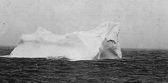 oraz góry lodowej, z którą prawdopodobnie zderzył się Titanic (zauważono na niej ślady czerwonej farby, jaką pokryta była podwodna część statku).