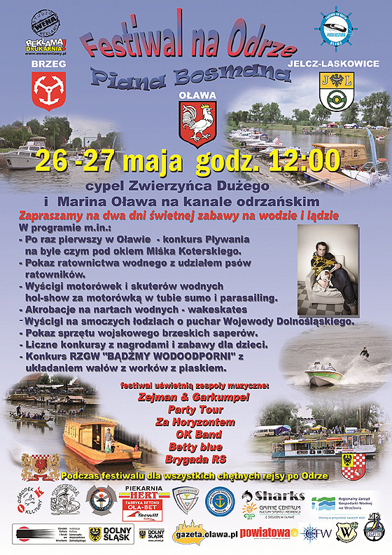Program jest bogaty i atrakcyjny. Współorganizatorami festiwalu są miasta Oława, Brzeg i Jelcz-Laskowice. Po raz pierwszy trasa rejsów wycieczkowych "Kaczuszką" zostanie rozciągnięta do Brzegu, gdzie powstaje przystań i marina. Wszystkich chętnych serdecznie zapraszamy. Z dworca PKP i PKS w Oławie będzie kursował autobus miejski na teren imprezy.Organizowana w latach 2010 i 2011 wodniacka impreza pod nazwa "Piana Bosmana" na stałe wrosła w kalendarz i w bieżącym roku, w ostatni weekend maja odbędzie się jej kolejna odsłona.