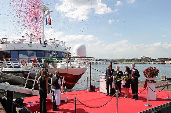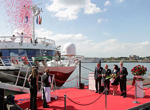 Początkowo uroczyste wodowanie przewidziane było na 14 czerwca, jednakże stocznia Neptun-Werft (Rostock-Warnemünde) z powodu sytuacji pogodowej na początku roku nieco przesunęła termin oddania statku do użytku.