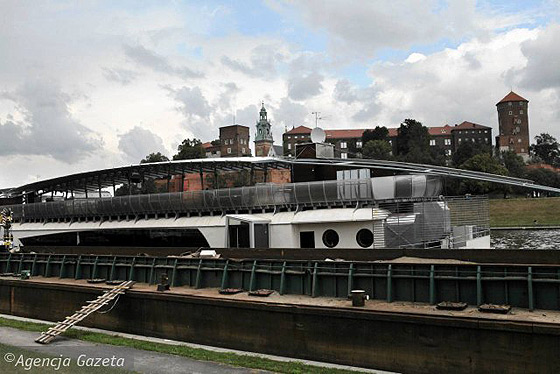 Naprzeciw Wawelu zacumowała nowa barka - "Stefan Batory". Znajdzie się na niej centrum konferencyjne na 400 osób. Na razie jest jeszcze w budowie.