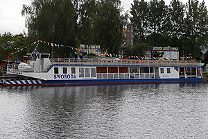 W sobotę przed południem odbył się chrzest jednostki. Matką chrzestną była nauczycielka Ewa Wiśniewska – żona starosty augustowskiego, która rozbiła o burtę statku szampana i nadała mu imię Swoboda. Dyrektor Żeglugi Augustowskiej Sławomir Aleksandrowicz powiedział podczas uroczystości, że jest zadowolony, że statek wreszcie wypłynął na wody augustowskie i cieszy się, że to najnowocześniejsza jednostka w Polsce.