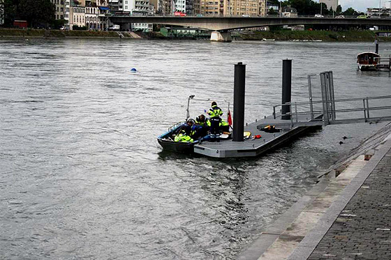Hamburski kuter pomiarowy przybył do Bazylei na początku tygodnia i miał następne dwa tygodnie pracować na Renie w Bazylei.