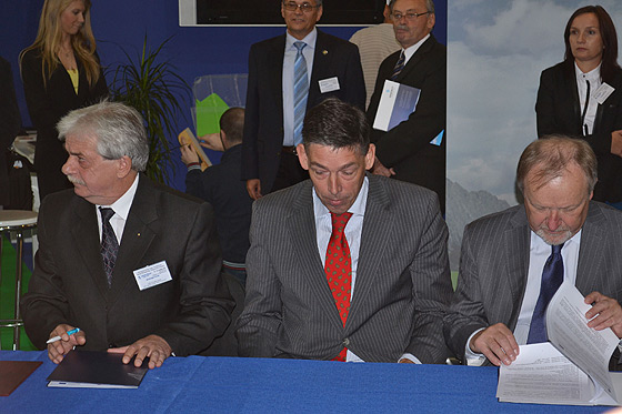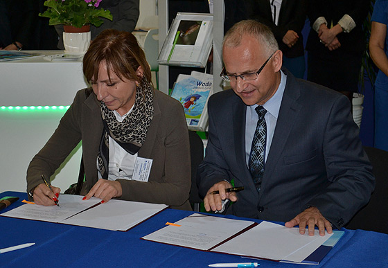Po Pani Minister kolejno przemawiali zaproszeni goście. Oczywiście była to w większości sama kurtuazja, choć padły na sam koniec przynajmniej dla mnie gorzkie słowa o dzisiejszej pustej rzece w kontekście jej obrazu z lat 80 tych. Po uroczystym przecięciu wstęgi symbolizującej otwarcie targów odbył się chyba najbardziej spektakularny akt targów, czyli podpisaniu dwóch umów: