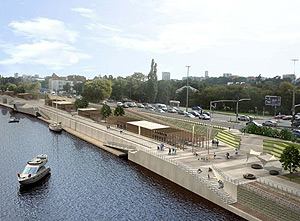 Kluczową rolę w przyciąganiu mieszkańców nad rzekę ma jednak pełnić bulwar między mostem Gdańskim a Świętokrzyskim, wzdłuż Starówki aż do pomnika Syreny. Konkurs na projekt "salonu nad Wisłą" ratusz rozstrzygnął w 2009 r., wygrała propozycja pracowni RS Architektura Krajobrazu. Ratusz podawał wtedy, że inwestycja będzie gotowa w 2013 r. Ale zima za pasem, a dotąd nikt nawet nie wbił pierwszej łopaty.