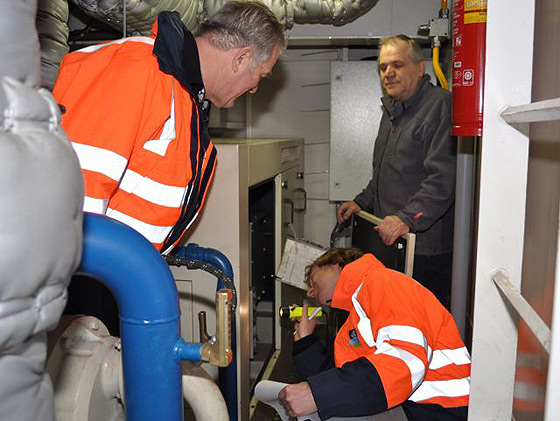 Inspektorzy Green-Award na pokładzie zestawu sprzężonego (koppelverband) "Fleur". Foto: Grohmann