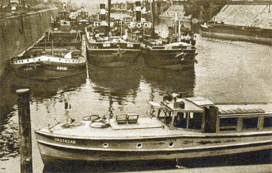 Port Koźle ok. roku 1900. Jak widac trwa jeszcze budowa pionowego nabrzeża pierwszego basenu.