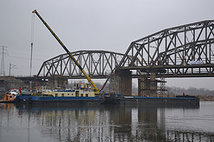 Most ten usytuowany jest na linii kolejowej Wrocław – Poznań i dlatego historycznie zwany mostem Poznańskim (nie przez wszystkich młodych "znawców Wrocławia" nazwa ta uważana jest za prawidłową, choć na przedwojennych mapach Wrocławia można znaleźć nazwę Posener Eisenbahnbrücke). Wczoraj, to jest 20.12.2012 od wczesnych godzin rannych rozpoczęła się - po kilkudniowych przygotowaniach - operacja podniesienia i przesunięcia na nasyp kolejowy od strony Popowic jednego z przęseł tego mostu. Most ten usytuowany jest na linii kolejowej Wrocław – Poznań i dlatego historycznie zwany mostem Poznańskim (nie przez wszystkich młodych "znawców Wrocławia" nazwa ta uważana jest za prawidłową, choć na przedwojennych mapach Wrocławia można znaleźć nazwę Posener Eisenbahnbrücke). Wczoraj, to jest 20.12.2012 od wczesnych godzin rannych rozpoczęła się - po kilkudniowych przygotowaniach - operacja podniesienia i przesunięcia na nasyp kolejowy od strony Popowic jednego z przęseł tego mostu.