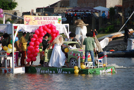 Bezsprzecznie wydarzeniem pierwszego dnia był konkurs pływania na byle czym. Na starcie w tym roku stanęło osiem załóg. Najlepszą propozycją okazała się "Weselna WENA", która przedstawiała małą sale z trwającym na niej hucznym weselem.