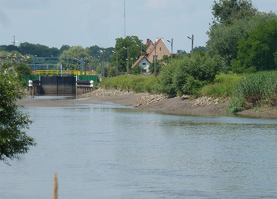 Foto2. Górna woda w kanale śluzy Zawada w dniu 9.07.2013