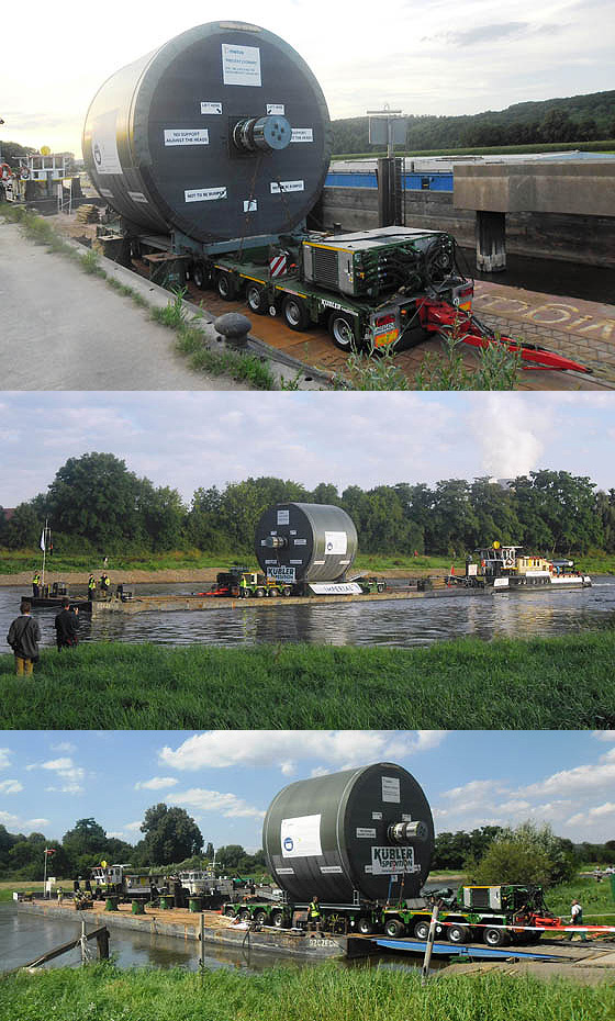 Element załadowano nieopodal elektrowni atomowej w Grohnde. W pierwszej fazie umieszczono na pontonie specjalistyczne samobieżne podwozie o 120 kołach, po zamocowaniu podwozia umieszczono na nim olbrzymi cylinder. Najważniejszą częścią zadania było przetransportowanie całego zestawu w górę rzeki do przeprawy promowej w Grohnde, gdzie istnieje odpowiednie miejsce do zjazdu zestawu z pontonu.