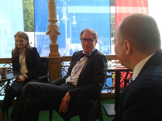 4.09.2014 - w ostatnim dniu XXIV Forum Ekonomicznego w Krynicy - odbyła się debata o żegludze śródlądowej i drogach wodnych jako doskonałym wsparciu logistyki transportu wewnątrz lądu. Debata była debatą jedynie z założenia, być może dlatego że dyskusji nie było, bo... nie było komu dyskutować. Poza osobami towarzyszącymi panelowi (czyli moja skromna osoba, asystentka pani Grigore, pan Marek Marszałek - reprezentujący organizatora debaty, tłumaczy i dwu hostess) na sali było zaledwie cztery osoby jako publiczność. Oczywiście organizatorowi nie udało się zaprosić przedstawicieli Ministerstwa Infrastruktury i Rozwoju i KZGW. Nie było też nikogo ze ZPAŚ czy UŻŚ.