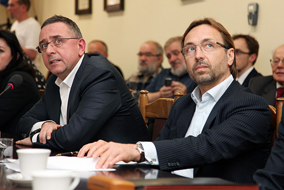 Na sesji panowie Mariusz Banaszuk (z lewej) i Jarosław Zemło (z prawej) spotkali się z władzami miasta. Pierwszy z nich przedstawił reprezentowany przez siebie fundusz Warsaw Equity Group - drugi - jako prezes należącej do funduszy spółki Baltchem - szczegółowo zapoznał zebranych z koncepcją zagospodarowania portu - od lat niewykorzystanego i popadającego w ruinę.
