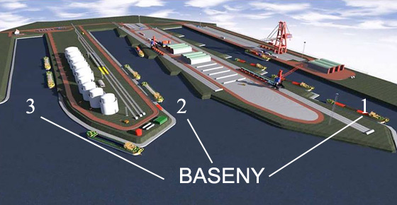 Ostatnim etapem ma być zagospodarowanie pionowego nabrzeża basenu pierwszego. Tu docelowo powstanie terminal kontenerowy o zdolności przeładunkowej 20.000 TEU rocznie. Powstanie tu plac składowy o dwóch polach do składowania kontenerów w pięciu warstwach po 300 szt na warstwę oraz hale do konfekcjonowania (przeładunku i składowania towarów wyładowanych z kontenerów jeśli wymagany jest ich natychmiastowy zwrot).