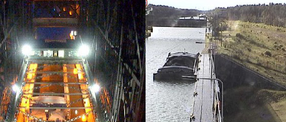 Jedna z zainstalowanych na stałe kamer skierowana jest na wnętrze podnośni i pokazuje cykl przepuszczania statków. Jest to szczególnie widowiskowe nocą i pozostawia niezapomniane wrażenia z obserwacji tego zabytku techniki.