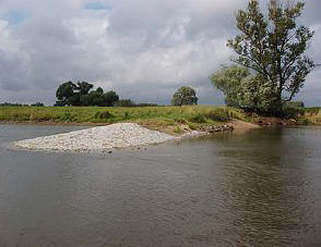 Odra transportuje 300.000 - 500.000 ton rumoszu rocznie, który zależnie od stanów wód przemieszcza się z prędkością ok. 100m miesięcznie w dół rzeki. Prowadzi to do tworzenia się lokalnych wypłyceń (przemiałów, łach) utworzonych przez osadzający się w korycie piasek. Prowadzi to także do ciągłego przemieszczania się lini największych głębokości. Celem tam regulacyjnych (główek, ostróg) jest utrzymanie takich wielkości przepływu w korycie, aby zminimalizować możliwość narastania przemiałów. Główki buduje się zwykle parami na obu brzegach, średnio 10 - 15 par na każdy kilometr koryta (od ujścia Nysy Łużyckiej koło Ratzdorf do ujścia Warty w Kostrzynie ich odstęp wynosi ok. 124 m). Ich renowacją i przywróceniem funkcji jakim służą zajęła się mała firma budownictwa wodnego z Eisenhüttenstadt. Do jesieni musi wykonać 4.500 m2 brukowań na tamach zuzywając do tego ponad 1000 t granitowej kostki. Dalszych 2.500 ton kamienia granitowego zostanie uzyte do obrzutu korpusu tam poprzecznych w części podwodnej. Usuwa się także uszkodzenia w tzw. materacach faszynowych, palikowaniu itp.