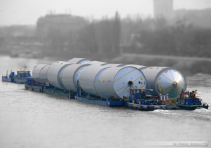 Ten ogromny zestaw złożony z trzech holowników, czterech wojskowych promów W2 , dwóch barek i jednej bunkierki, to transport zbiorników dla browaru w Leżajsku. Przez Warszawę przepływał on 1-go grudnia. Na tak wielki zestaw załadowano w sumie jedenaście zbiorników. Dziewięć dużych, ważących po 33T każdy i dwa mniejsze. Ze względu na swe gabaryty, wartki prąd i warunki nawigacyjne na Wiśle, transport pokonywał dziennie od 30 do 40km. Przedsięwzięciem , od strony transportu wodą, dowodził kpt. Witold Łożewski.