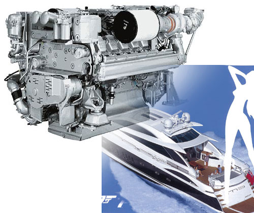 Ten superszybki, 33 m długi jacht, napędzany jest trzema szesnastocylindrowymi silnikami MTU typu 2000 M91 o łącznej mocy 6000 KM (na ilustracji wersja dziesięciocylindrowa). Silniki te rozpędzają to cacko do 42 węzłów! Sceny do filmu kręcone były na Bahamach, w Wenecji, Londynie i w studio filmowym w Pradze, gdzie zbudowano oryginalny pulpit sterowania silnikami. Ogromna platforma hydrauliczna symulowała ruch statku na falach.