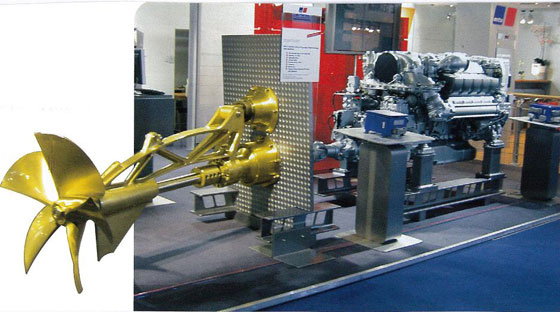 Jacht ten ma nowatorsko rozwiązane pędniki. Śruby mają automatycznie regulowaną głębokość zanurzenia w zależności od obciążenia (tzw. Oberflächenpropeller firmy Arneson). Przy maksymalnej prędkości śruby znajdują się tuż pod powierzchnią wody i jacht ciągnie za sobą efektowny welon piany. Na załączonym zdjęciu widać tego rodzaju napęd, z silnikiem MTU 10V2000 Cammon Rail, wystawiony po raz pierwszy w "Salone Nautico" w Genui w pazdzierniku ubiegłego roku.