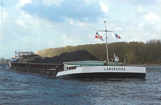 "Laboremus" ma 85 metrów długości, 11 szerokości i z ładunkiem max.1880 ton osiąga zanurzenie 2,95 metra. Operuje z reguły na trasie Rotterdam - rejon Neckaru, wożąc w górę węgiel, a sól w dół rzeki.