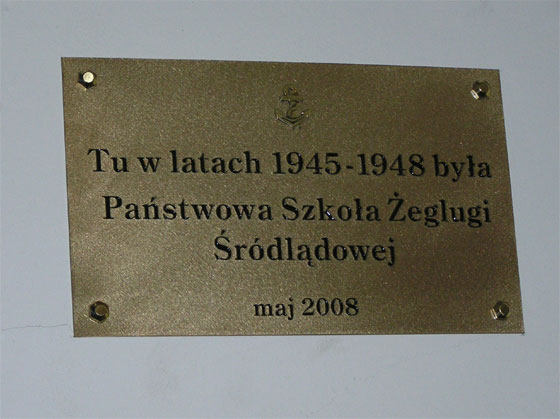 W dniu 9 maja 2008 r. o godz. 16.00 nastąpiło skromne, aczkolwiek uroczyste odsłonięcie tablicy pamiątkowej z udziałem 15 osób, ku czci pierwszej po wojnie Państwowej Szkoły Żeglugi Śródlądowej funkcjonującej w latach 1945-1948, kiedy to 60 lat temu została przeniesiona do Elbląga.