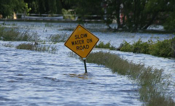 A gdzie to jest? Sądząc po znakach drogowych - w USA. Zdjęcie dla potrzeb naszej strony troszkę okroiłem - na pierwszym planie widoczna była droga zanurzająca sie pod wodę - znak stał jakieś 50m od tego miejsca.