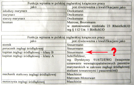 5.polski kapitan - klasy B żeglugi śródlądowej to niemiecki Steuermann