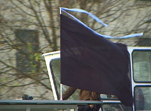 Czarna flaga z dwiema błekitnymi wstążkami (krótszą i dłuższą), symbolizującymi dwie główne polskie rzeki - to znak protestu właścicieli firm transportu śródlądowego zrzeszonych w Związku Polskich Armatorów Śródlądowych przeciwko polityce gospodarowania wodami w Polsce.
