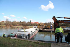 Co się stało? Holenderska barka motorowa "Relax" (740 ton, 67 m), której kapitanem jest Sjef van Emmerloot (60), a załogantem jego żona Dieny (59), ładowała po raz 28-my paszę dla bydła (otręby pszenne) w młynie kolo Bad Wimpfen, z przeznaczeniem do Rotterdamu i dalej do Wielkiej Brytanii. Podczas manewru odcumowania, zaklinowała się dziobowa lina, którą obsługiwała Dieny. "Relax" zaczął obracać się na silnym prądzie Neckaru, który w tym miejscu miał szerokość tylko 65 metrów. Zabrakło kilku metrów do całkowitego obrócenia. Barka zaklinowała się między obydwoma brzegami tak dokładnie, że nawet kaczka nie przepłynęła.