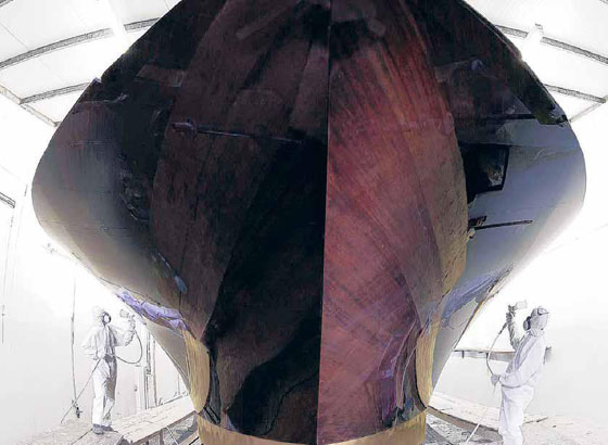 Potężny, szlachetny, błyszczący. Kadłub Aguti podczas prac konserwacyjnych w stoczni Denninger & Meile