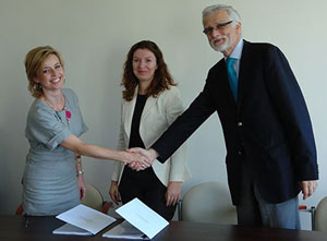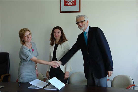 Na zdjęciu Dorota Lost-Siemińska (Ministerstwo Infrastruktury) i Cezary Gołębiowski (Ecorys Polska) po podpisaniu umowy.