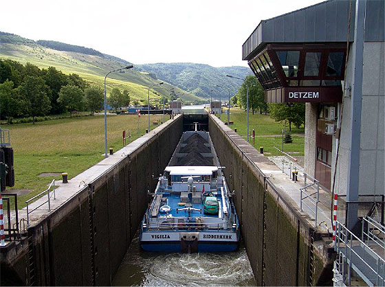 Śluza Koblenz wykonała w minionym roku 1800 śluzowań statków pasażerskich - wycieczkowych i hotelowych. Znacznie częściej niż w latach ubiegłych statki pasażerskie docierały do śluzy Zeltingen, która odnotowała 5000 śluzowań w ruchu pasażerskim. W przewozach kontenerów osiągnięto wynik z roku 2009 i wyniósł on 5000 szt.W roku 2010 przez śluzę Koblenz przeszło ok. 11 tys statków towarowych transportując Mozelą okrągłe 14 milionów ton. Załamanie spowodowane kryzysem gospodarczym w roku 2009 zostało więc prawie wyrównane i w stosunku do roku poprzedniego wzrost transportu wyniósł 20%. Mozelą transportowane są głównie towary masowe. Transport rud i złomu metali osiągnął poziom 1,5 mln ton. Znacząco wzrósł także przewóz paliw (o 0,5 mln ton) oraz płodów rolnych (o 0,4 mln ton).
