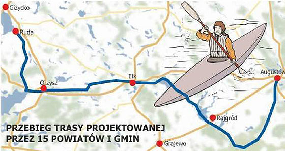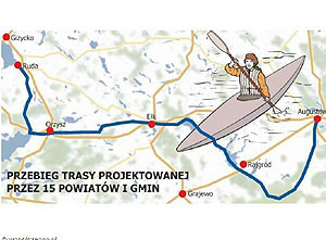 Dopłynąć będzie można w zasadzie wszędzie, bo droga wodna zacznie się na jez. Niegocin, pobiegnie pogłębionym rzekami, systemem kanałów i śluz do Pojezierza Ełckiego, z końcem na Biebrzy. Ta rzeka poniesie zaś nawet poza granice Polski.