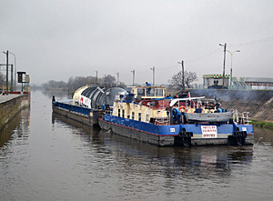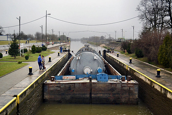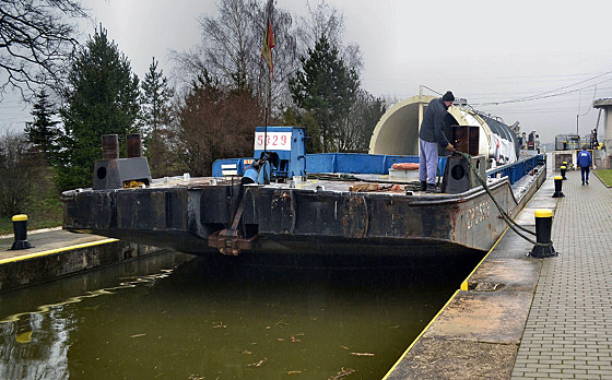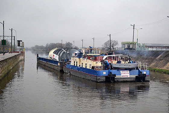 Dodatkową trudność sprawiało pokonanie stopnia wodnego Dobrzeń Wielki przez małą komorę śluzy, a właściwie samo wyciągnięcie barki z komory śluzy. Gdyby nie pomoc całej zmiany pracowników stopnia wodnego oraz pomoc pracowników Navigi remontujących górną głowę śluzy pociągowej ta trudna sztuka przeprowadzenia pierwszej barki z pewnością nie powiodła by się.