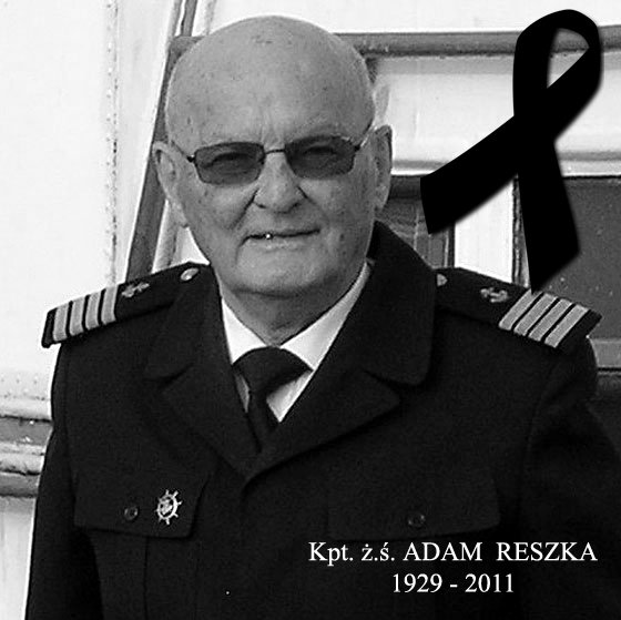 Z wielkim żalem i smutkiem zawiadamiam, że Wielki Znawca żeglugi śródlądowej i wszystkiego co z nią związane od czasów dawnych po współczesność, nauczyciel i wychowawca wielu pokoleń marynarzy rzecznych, dyrektor warszawskiej filii Technikum Żeglugi Śródlądowej i szef Inspektoratu (dziś Urzędu) Żeglugi Śródlądowej w Warszawie - kmdr ADAM RESZKA - przepłynął na drugi brzeg Rzeki Życia i zacumował w Zacisznym Porcie Wiecznej Wachty. Uhonorowany przez nas - Absolwentów TŻŚ Naszą Odznaką - z dumą nosił ją na kieszeni munduru czując się członkiem naszej społeczności nie tylko dlatego, że uczył w warszawskiej filii TŻŚ.