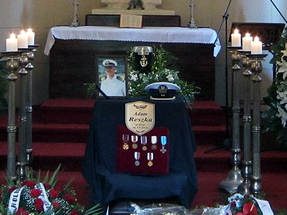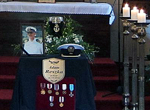 Piątek, trzynastego maja, trzynasta.... We wnętrzu Kaplicy Halpertów na cmentarzu ewangelicko-augsburskim w Warszawie na katafalku spoczywa ozdobiona złotą kotwicą urna z prochami Adama Reszki. Przed urną zdjęcie w komandorskim mundurze i czapka oficera Marynarki Wojennej RP. Płoną świece, a rozpostarte ramiona Chrystusa mówią nam: oto wasz Ojciec, Brat, Dziadek, Przyjaciel, Kolega, Kapitan kapitanów... Dotarł do Portu Przeznaczenia i to nie wy Jemu ale On wam oddaje - jak to pięknie powiedział prowadzący nabożeństwo ks. Piotr Gaś - ostatnią posługę: jednoczy was wokół siebie, pogrążonych w smutku i zadumie.