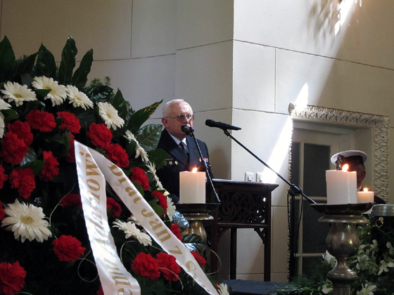 W krótkich słowach żegnają go przyjaciele. Kolejne przemowy rozdziela nastrojowa muzyka organowa, Wnuczka Komandora - Małgorzata Niedziałek-Morand du Puch odczytała wiersz Adama... Robi mi sie gorąco, bo rozpoznaję, iż inspiracją wiersza był mój obrazek, który zdobił naszą stronę w Święto Zmarłych. To już drugie takie moje tego dnia szczególne odczucie. Pierwsze nastąpiło, gdy przed kaplicą ujrzałem nazwę firmy pogrzebowej "Ares". Takim przecież skrótem często podpisywał Adam Reszka swoje wypowiedzi na naszej stronie.