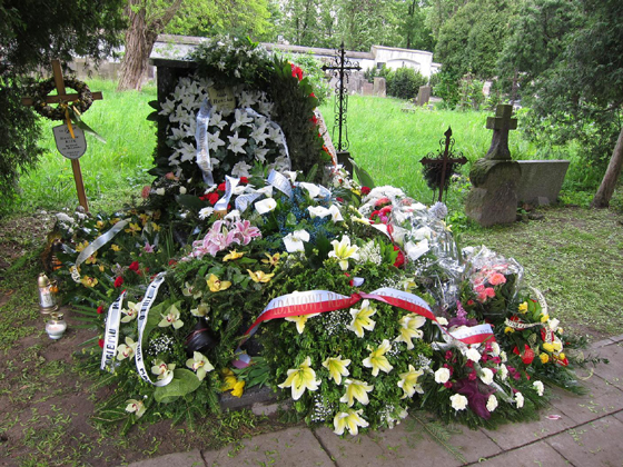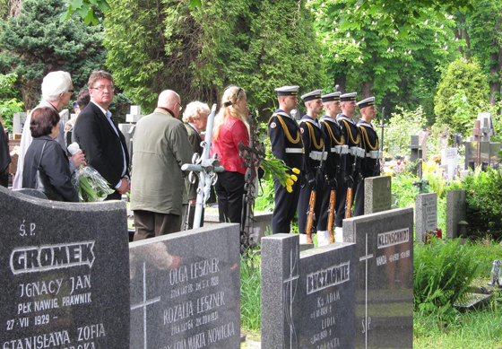 Docieramy do celu. Nasz Komandor spocznie obok ukochanej Żony. Jej odejście było dlań wielkim bólem, który dzieliliśmy z Nim na pokładzie naszego statku http://www.zegluga-rzeczna.pl/news.php?readmore=600 . Gdy urna zsuwa się do grobu rozbrzmiewa salwa z karabinów marynarzy, a trębacz orkiestry wojskowej gra sygnał "Śpij Kolego". Miejsce spoczynku Kapitana kapitanów pokrywa się wieńcami i wiązankami.