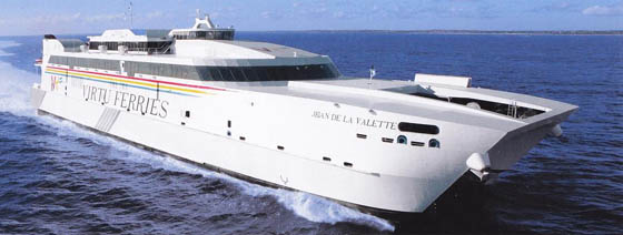 Drugim "gigantem" jaki chciałbym pokazać, jest największy w Europie dwukadłubowy prom pasażersko - samochodowy "Jean de la Valette" (tzw. typ Auto Express 107). Powstał w stoczni Austal Ships Pty Ltd. w zachodniej Australii, która specjalizuje się w budowie szybkich, wielokadłubowych promów z aluminium. Wszedł do eksploatacji we wrześniu 2010 u armatora Virtu Ferries z Valetty na Malcie. Nowy prom łączy Maltę z Sycylią, a dokładniej Valettę z Pozzallo. 93 kilometrowy odcinek przebywa w ciągu półtorej godziny. Zawija równiez do Catanii i wtedy podróż trwa trzy godziny. Zastąpił inny prom, "Maria Dolores" z roku 2006 (600 pas., 65 sam.os.), który był zbyt mały i nie był w stanie obsłużyć rosnącej masy turystów.