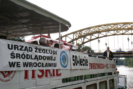 Dyrektor Urzędu Żeglugi Śródlądowej we Wrocławiu - dr Jan Pyś - zaprosił na te uroczystość wielu znakomitych gości. Reprezentowane było Ministerstwo Infrastruktury, Dolnośląski Urząd Marszałkowski, przybyli także armatorzy i stoczniowcy, przedstawiciele instytucji związanych z Odrą i gospodarką wodną (RZGW), turystyką wodną (PTTK, DOT) oraz rzecz jasna dawni i obecni pracownicy UŻŚ. Wojewoda wrocławski - Aleksander Skorupa - wręczył medale i odznaczenia zasłużonym pracownikom Urzędu Żeglugi Śródlądowej. W miniony piątek 19.08.2011 na pokładzie statku pasażerskiego "Goplana" odbyła wrocławska część obchodów 50-lecia Administracji Żeglugi Śródlądowej w Polsce. Wcześniej taka uroczystość odbyła się m.in. w Szczecinie.