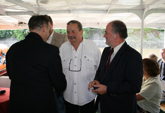 Od lewej: Dariusz Karkos (zasłonięty) Rentrans Cargo, Zygmunt Szewczyk - Towarzystwo Entuzjastów Żeglugi Śródlądowej, kierownik PRS Andrzej Merło