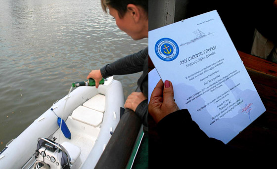 Kulminacyjnym punktem rejsu było dokonanie chrztu dwóch nowych jednostek pływających, które weszły w skład floty Urzędu Żeglugi we Wrocławiu: szybkiej łodzi Typu RIB "Inspektor 82", której matką chrzestną została Pani