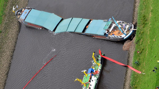 13.09.2011 z niewyjaśnionej jeszcze przyczyny załadowany ok tysiącem ton rudy żelaza frachtowiec bandery holenderskiej "Janina" stanął w poprzek rzeki Hunte w okolicach Neuenhuntorf (Hunte km 16,5), przy opadającej wodzie zakleszczył się na umocnieniach brzegów. Centrala ruchu WSA Bremen natychmiast podjęła działania zmierzające do zabezpieczenia miejsca oraz wstrzymania żeglugi na rzece. Zaalarmowano Policję Wodną, Straż oraz służby holownicze. Próby ściągnięcia "zawieszonego" kadłuba jednak nie powiodły się i ok. godz 22.15 przy wciąż opadającej wodzie statek pod ciężarem ładunku przełamał się na dwie części.